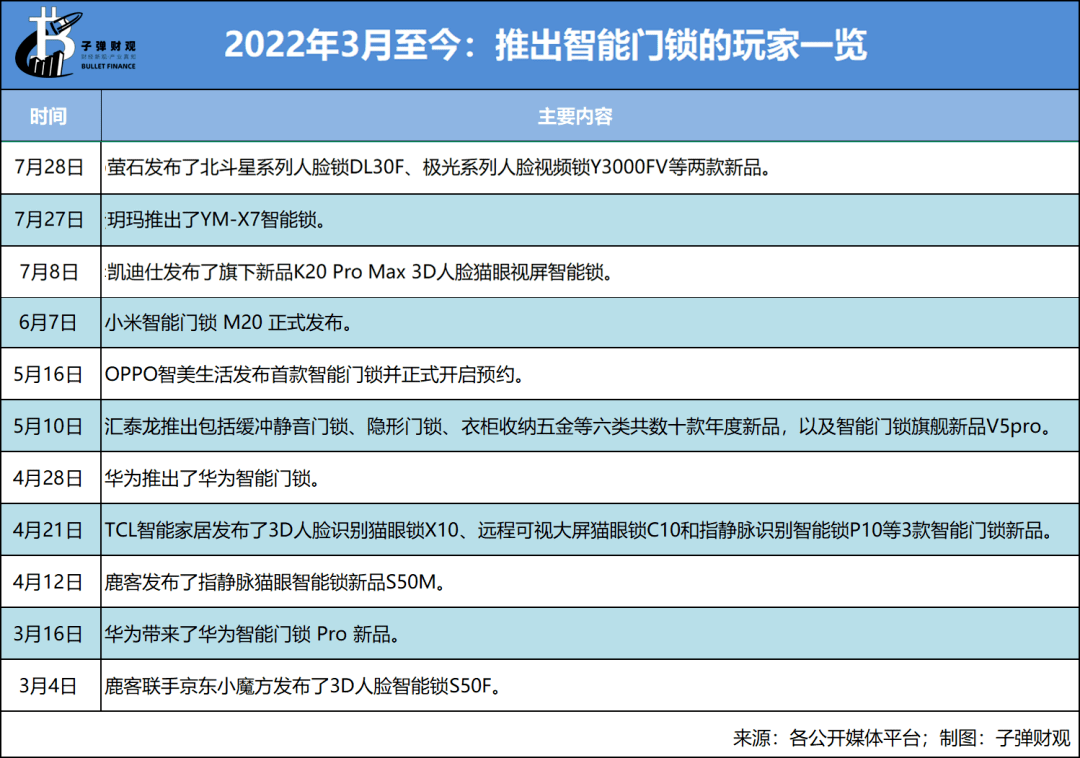 而进入2022年,除了入局者不断,智能门锁行业官宣新品的玩家也愈来愈多。