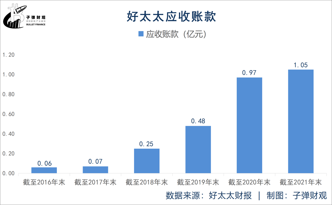 也就说,短短五年时间,好太太的应收账款已暴增近17倍。