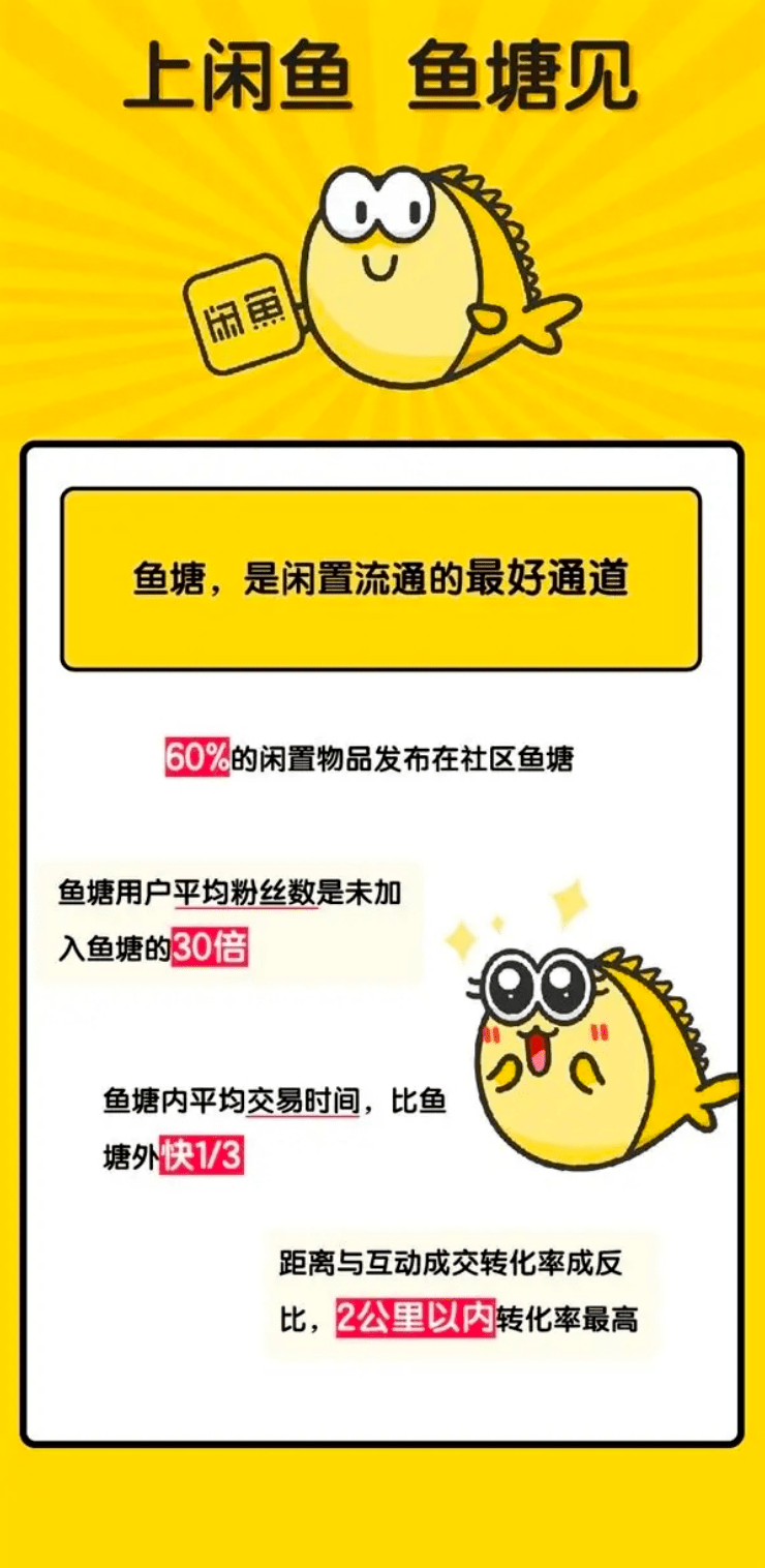 2017年,平台超过百万用户的鱼塘已达数十个。同年,闲鱼还面向100个城市,投入10亿元的资源支持创意鱼塘。