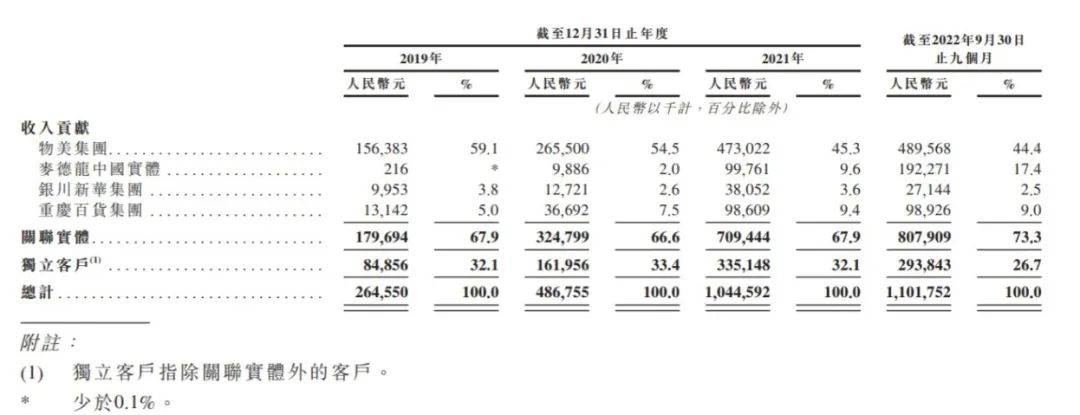 在报告期内,七成以上的净收入来自物美集团、麦德龙中国实体、重庆百货集团、银川新华集团构成的“物美系”,而其中四成以上来自物美集团。