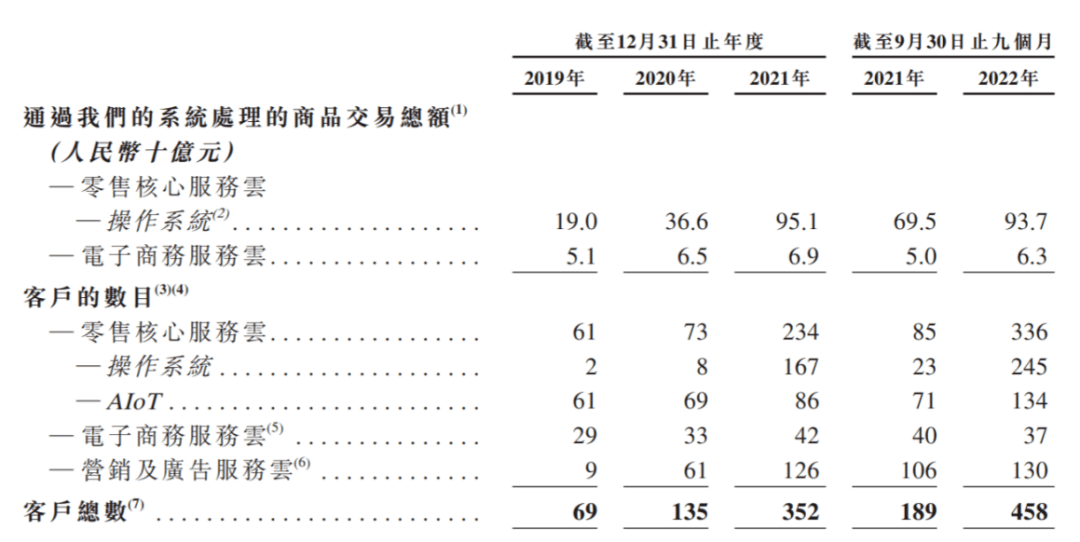 招股书显示,在收入构成中,电子商务云占比由2019年的64.5%降至2022年的30.5%,零售服务云占比逐年提升,已经由33.8%提高至58.1%。