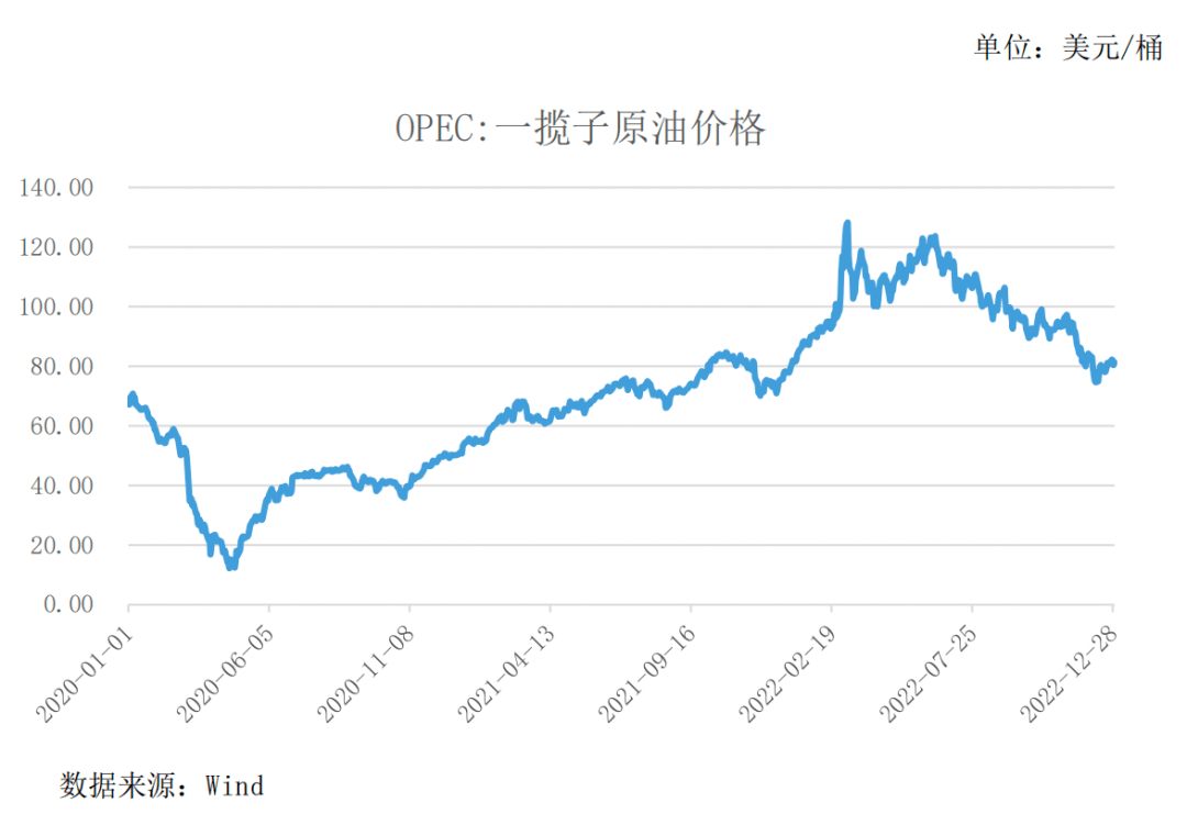 自2020年6月以来,一揽子原油价格持续走高,2022年年中,价格有所回落,但是总体上来看,仍然处在较高的水平。