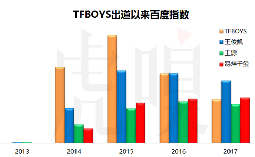从百度指数可以看出,粉丝正营中的团粉(喜爱团队中所有成员的粉丝)一枝独大到逐步衰落,成员单人人气逐步攀升。