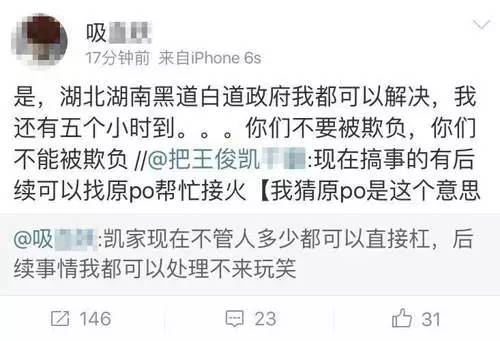 某易烊千玺粉丝于21时35分发微博求援:“希望广电(湖南广电中心)附近居住的千纸鹤(易烊千玺粉丝自称)能过来帮帮我们,凯家(王俊凯粉丝)占了我们应援位,还不让我们把应援物放在那里,协商无果的情况下找了好多人准备在我们放应援物的时候打人,现在这里千纸鹤都是妹子,我们要是出了什么事就以这条微博为证。”