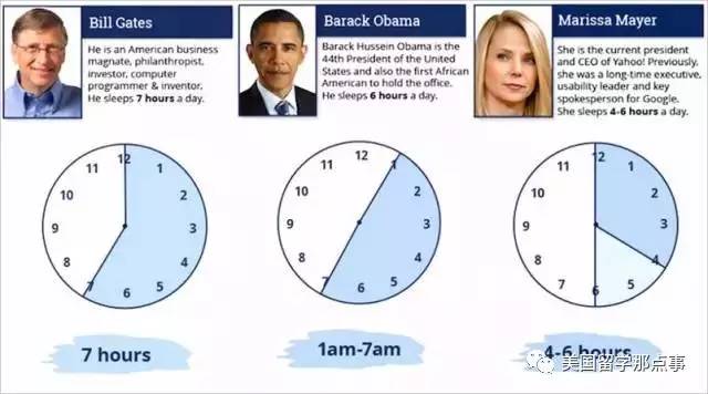 媒体也时不时地会写关于睡眠时间的文章,列出那些成功人士只睡三四个小时的例子——奥巴马每天只睡6个小时,雅虎的美女 CEO 玛丽莎?梅耶尔每天只睡4个小时,今年把总统选战搅成一团浑水的地产大亨特朗普据说也只睡4个小时……