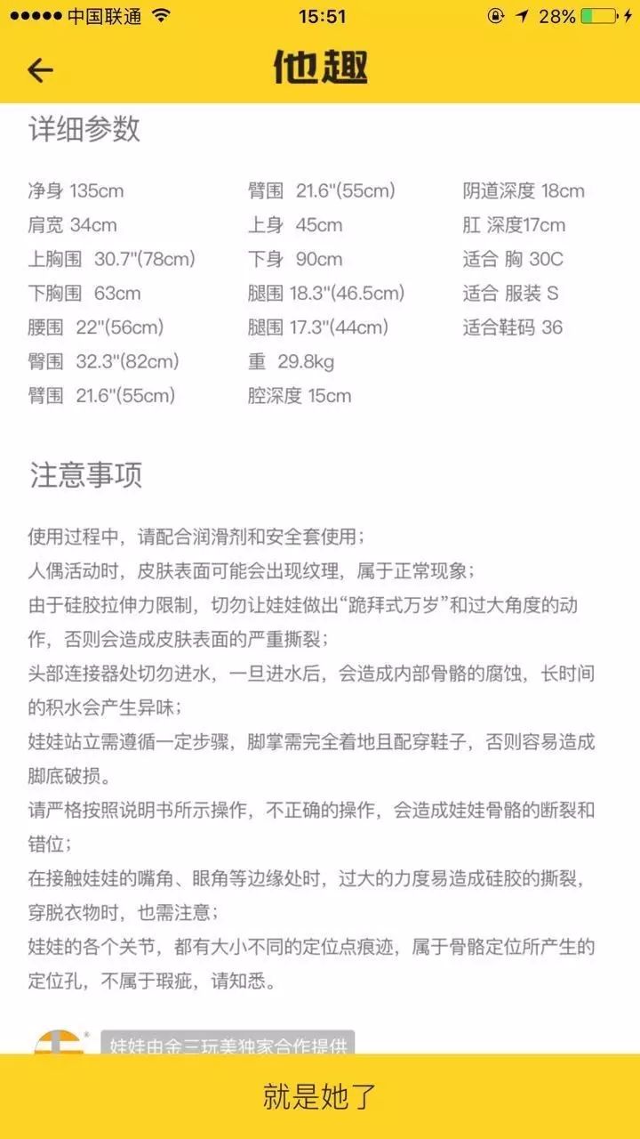 这些共享娃娃的仿真度都很高,身高、体重、三围等一些细节上的参数都有详细说明。