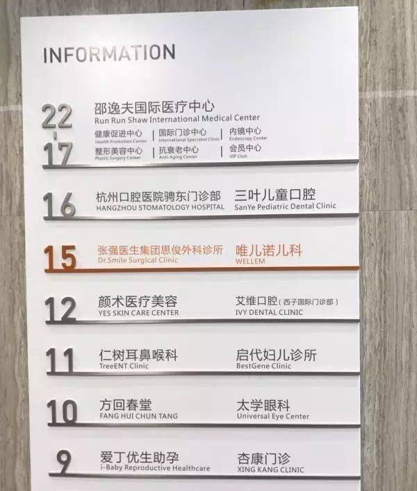 9-16层招租高端民营的外科、儿科、口腔科、眼科、中医、医美等专科诊所;17-22层,则是全程医疗和邵逸夫医院联合打造的邵逸夫国际医疗中心。