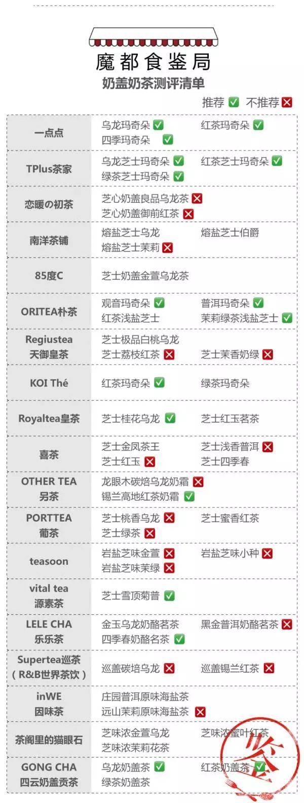 另外一个厉害的角色@吃货组长,在尝试了19个饮品店147杯奶盖奶茶之后,得出了喜茶奶盖奶茶NO WAY的结论。