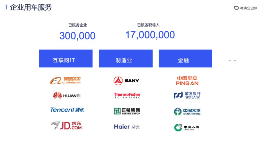 从目前看,滴滴企业版已经服务了 30 万家企业,服务用户超过了 1700 万人。