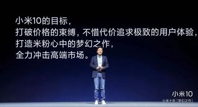 雷军在发布会中坦言称,小米10的目标就是打破价格的舒服,不惜代价追求极致的用户体验,打造米粉心中的梦幻之作,全力冲击高端市场。