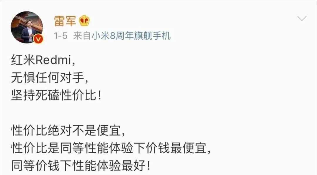 自卢伟冰加入小米以来,已带领Redmi品牌不断冲出高峰、不断打破性价比,用自己的行动告诉每位消费,这才是货真价实的产品,这才是极致性价比。