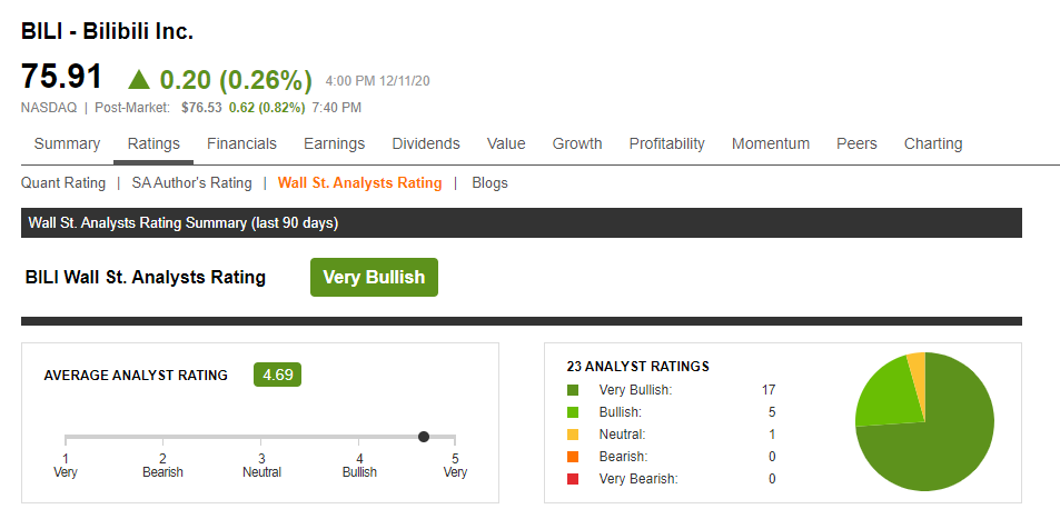 「子弹财经」查询美国投资网站的数据发现,在华尔街核心的27家投行中,目前已有23位知名的分析师发布了研究报告,表达出对B站股票买入评级的看法。