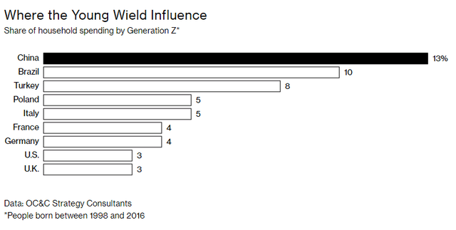 根据彭博社报道,中国的Z世代约占家庭支出的13%,而美国仅为3%,英国为3%,这意味着B站原有的用户群有明显的市场优势。