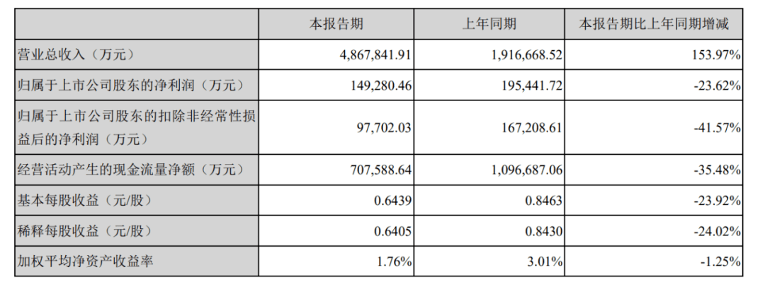 4月29日,宁德时代才公布了2022年一季报。数据显示,虽然实现营业收入486.78亿元,同比增长153.97%,但净利润14.93亿元,同比下降23.62%,扣非后的净利润仅为9.77亿元,同比更是下降41.57%。